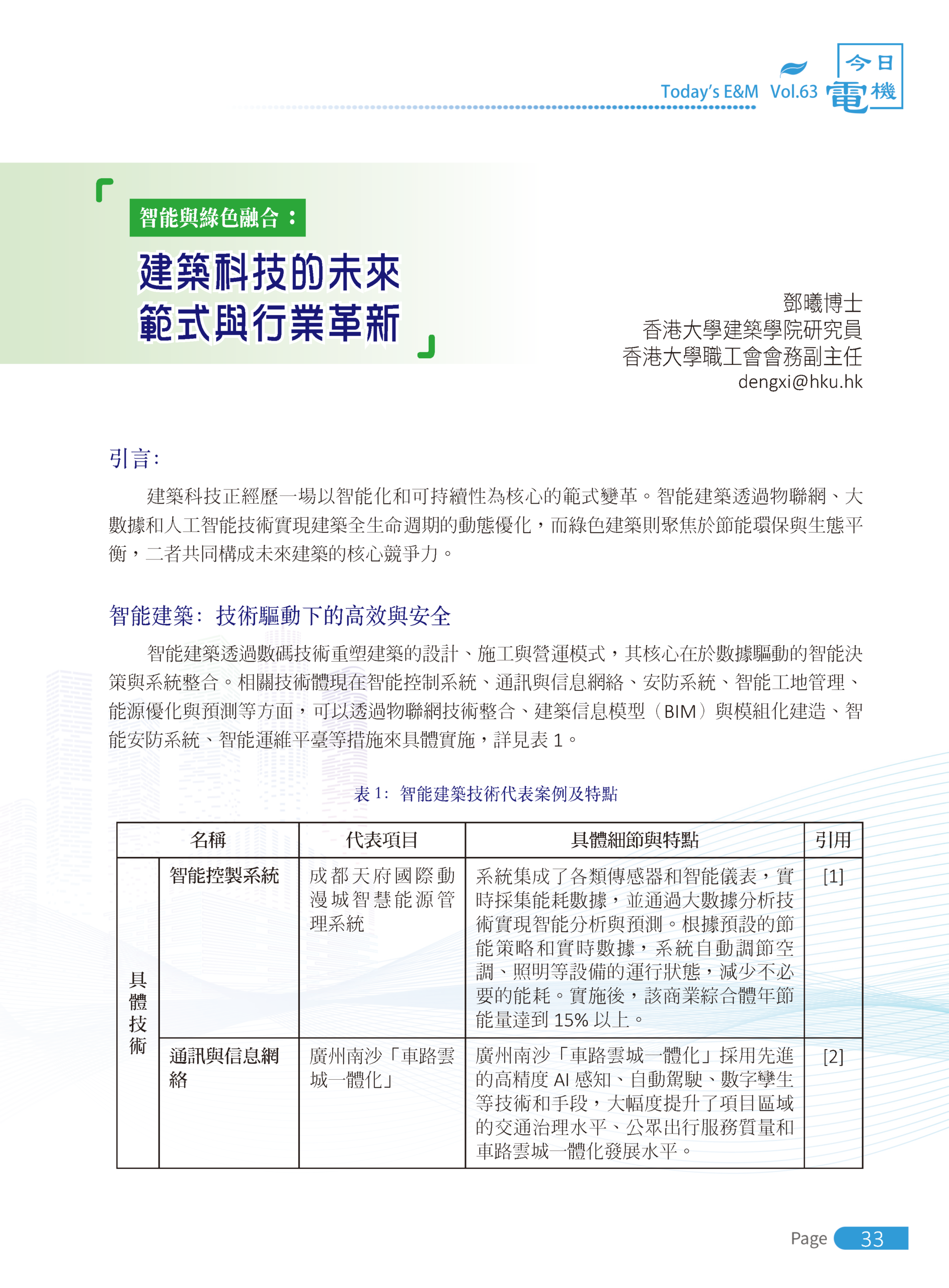 【今日機電第63期】《智能與綠色融合:建築科技的未來範式與行業革新》-鄧曦博士
