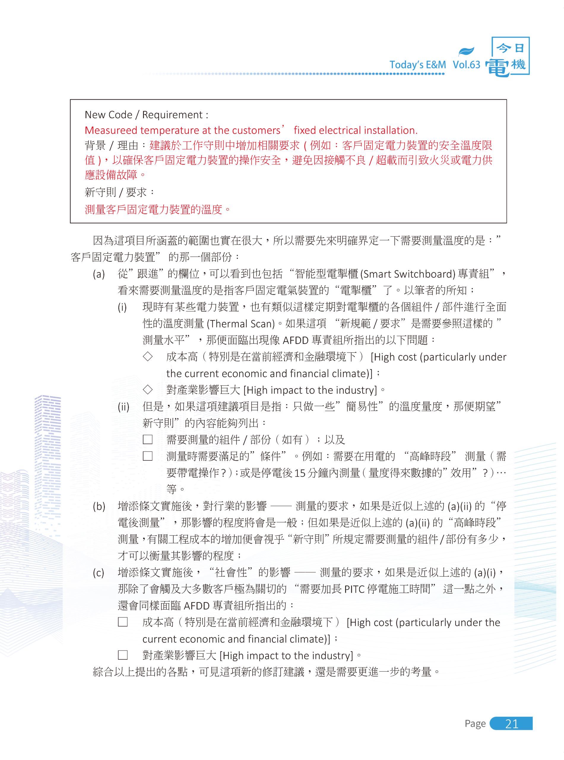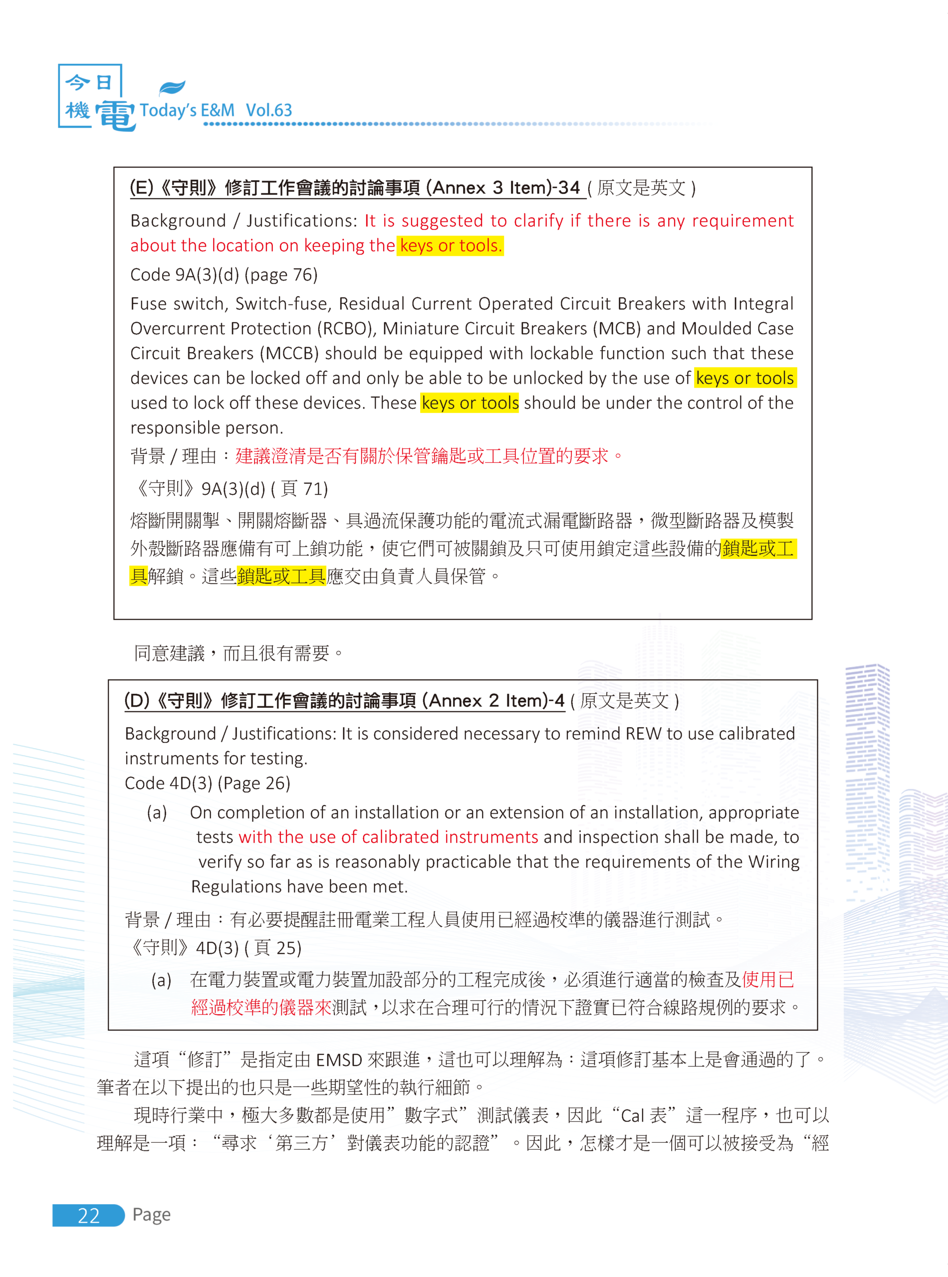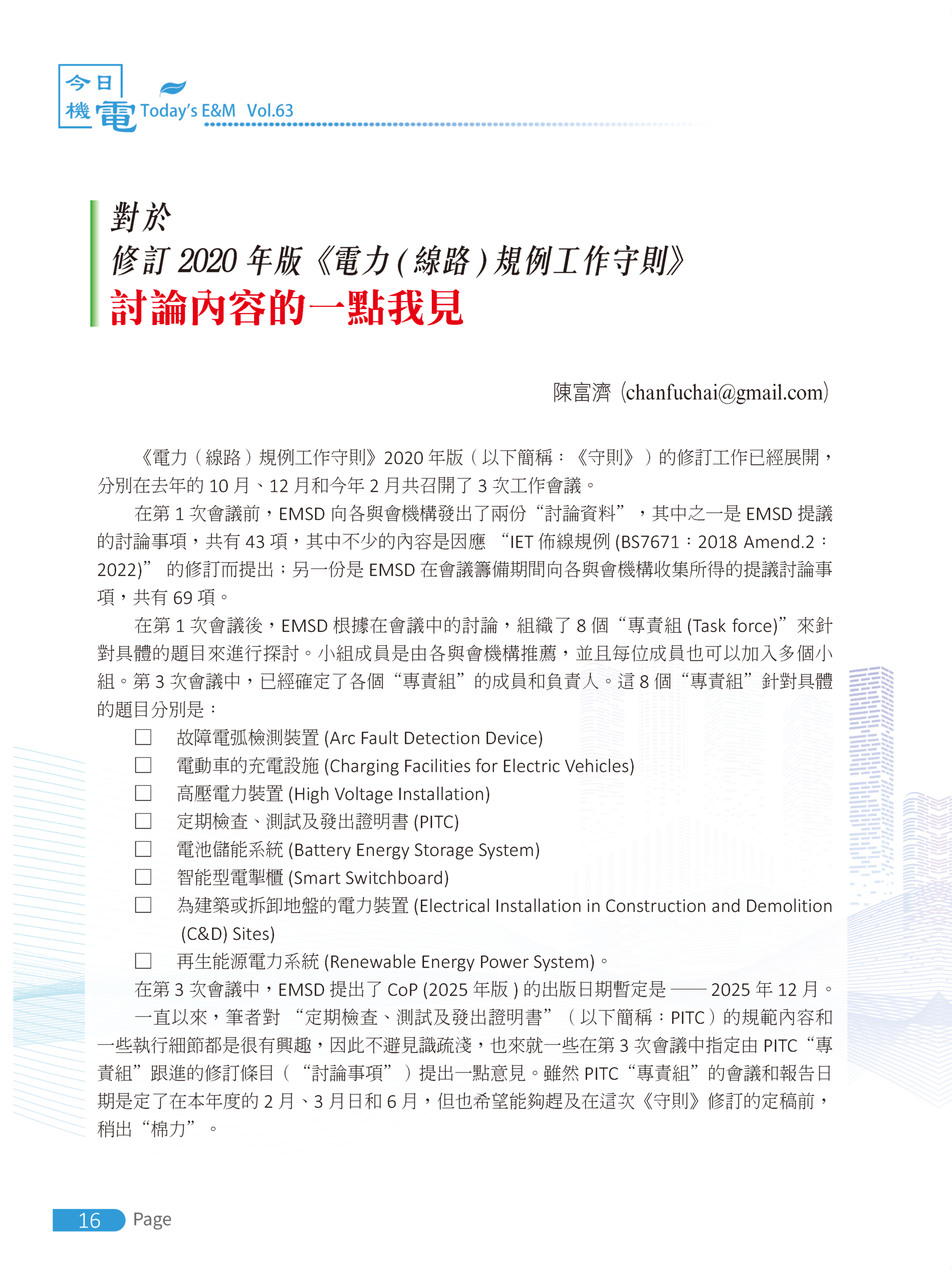 【今日機電第63期】對於修訂2020年版《電力(線路)規例工作守則》討論內容的一點我見-陳富濟